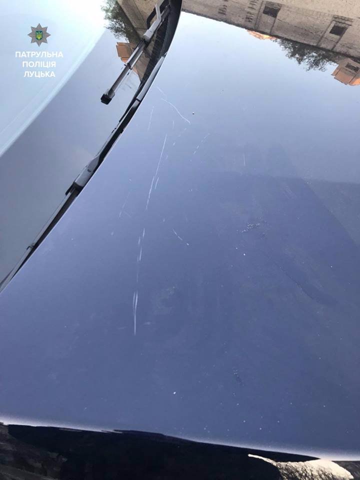 У Луцьку бабуся бруківкою подряпала капот автомобіля, який припаркували у неналежному, на її думку, місці.