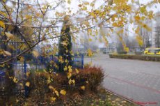 На світлинах закарбовані вулиці та будинки міста у моменти пізньої осені. Місто неначе накрите тонкою водяною пеленою безперервного дощу. Останнє жовте листя зірвалося з дерев і зникає.