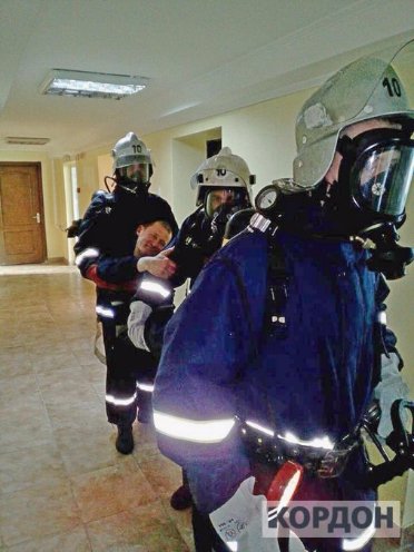 Тим часом рятувальники, що прибули на місце виклику, в складі ланки ГДЗС пішли в розвідку і задіяли на гасіння псевдовогню водяні стволи, а також подали воду на захист сусідніх приміщень. Протягом 27 хвилин умовна пожежа була ліквідована.