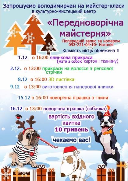 У культурно-мистецькому центрі Володимира-Волинського розпочла роботу передноворічна майстерня, яка діятиме протягом трьох тижнів.