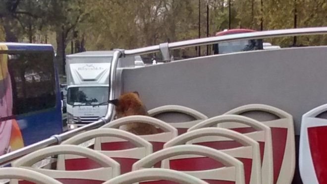 «Безквитковий пасажир» сидів на верхньому поверсі й доїхав автобусом до Парк-Лейн, у центрі британської столиці, аж поки тварину помітили.