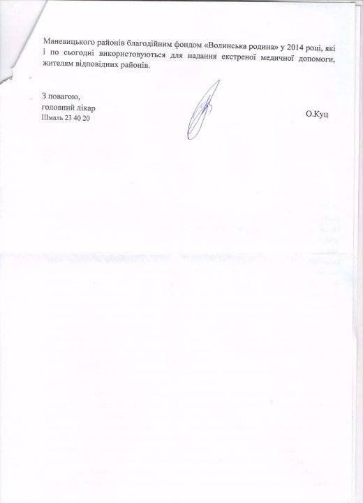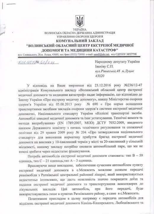 Далі, за словами директора фонду, представники «Волинського Центру ЕМД» запропонували свій варіант вирішення проблеми. Виявляється, зайвий реанімобіль в них був. Але використовували його, як пояснив керівник Центру Олег Куц, не за призначенням, а для «роботи оперативно-штабної бригади». А саме – для перевезення персоналу і вантажів. Тому медики запропонували Фонду: купіть для нас звичайний пасажирський бус, а тоді ми зможемо цей реанімобіль передати в Межисить.