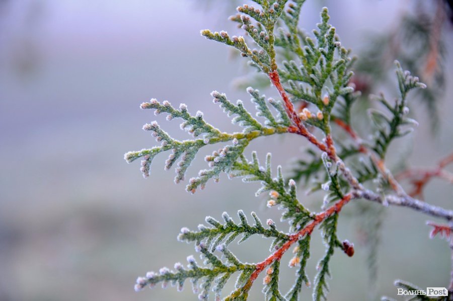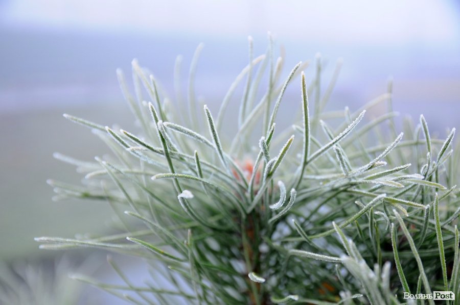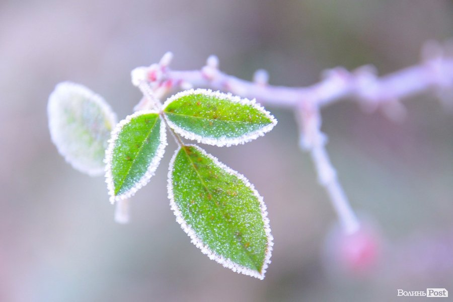 Калюжі та поверхні водойм вкрилися тонкою кригою, а трава та гілочки дерев - памороззю.