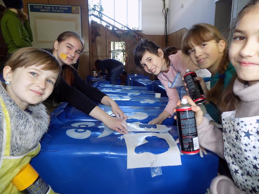 В суботу, 25 листопада, активні мешканці громади - діти, дорослі – Алла Жупанюк, Юлія Рудчик, Василь Мішко, Олена Курбан, Валентина Булік та члени дитячої студії «Чарівний пензлик» взяли участь у розписі сміттєвих баках.