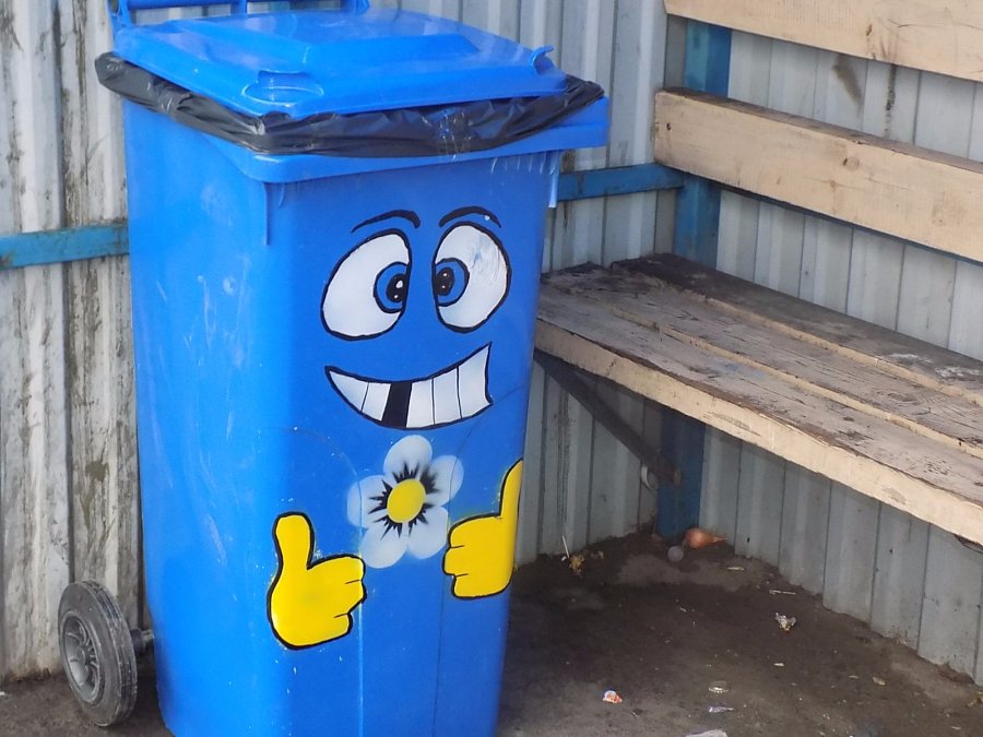 На кожному смітнику зобразили кумедні обличчя чоловічків – веселі, сумні, стривожені.