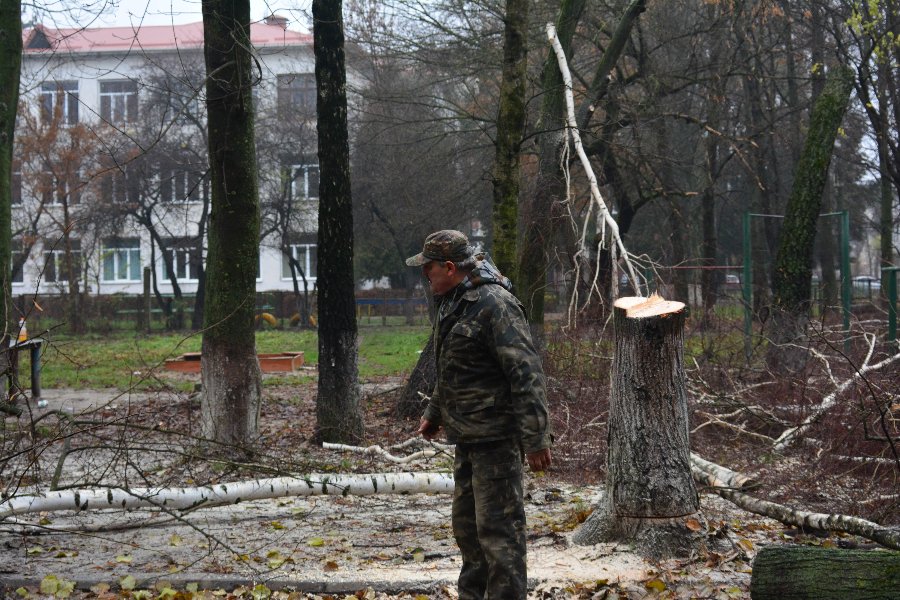 «Ще десь навесні до нас звернулися мешканці будинку на Перемоги, 21 із проханням зрізати дерева. Дерева були густонасаджені і берези були похилені на дитячий майданчик. На підставі їхнього звернення ми подали документи у відділ екології. Ті, у свою чергу, виїжджають на місце, оглядають дерева і дають дозвіл на зрізання. Потім видається рішення з яким ми йдемо в ЦНАП, а вже потім маємо ордер. Усе законно», - розповів він.
