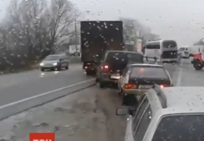 Мокрий сніг, дощ і небезпечна ожеледиця така сьогодні погода у більшості регіонів України. Через туман і слизькі дороги на Полтавщині десятки автобусів не випустили в рейс, в Києві і передмісті затори, рух майже паралізований через велику кількість аварій.