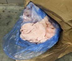 Волинські митники на посту «Ягодин» під час митного огляду рейсового автобуса «Хелм-Шацьк» виявили в одного з пасажирів незаявлений при усному опитуванні та не вказаний у декларації товар, а саме: 23 пакунки свинячого сала, загальною вагою 540 кг.