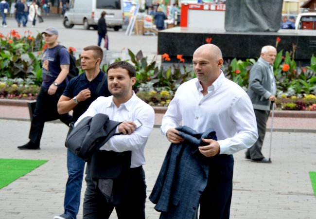 Відбулося чергове судове засідання в справі кермування автомобілем в стані алкогольного сп'яніння головою правління Фонду Ігоря Палиці (на фото - у білій сорочці справа) "Тільки разом" Олександром Товстенюком (на фото - у білій сорочці зліва). Позивач, який зізнався у тому, що був напідпитку за кермом, вирішив оскаржити рішення суду першої інстанції.