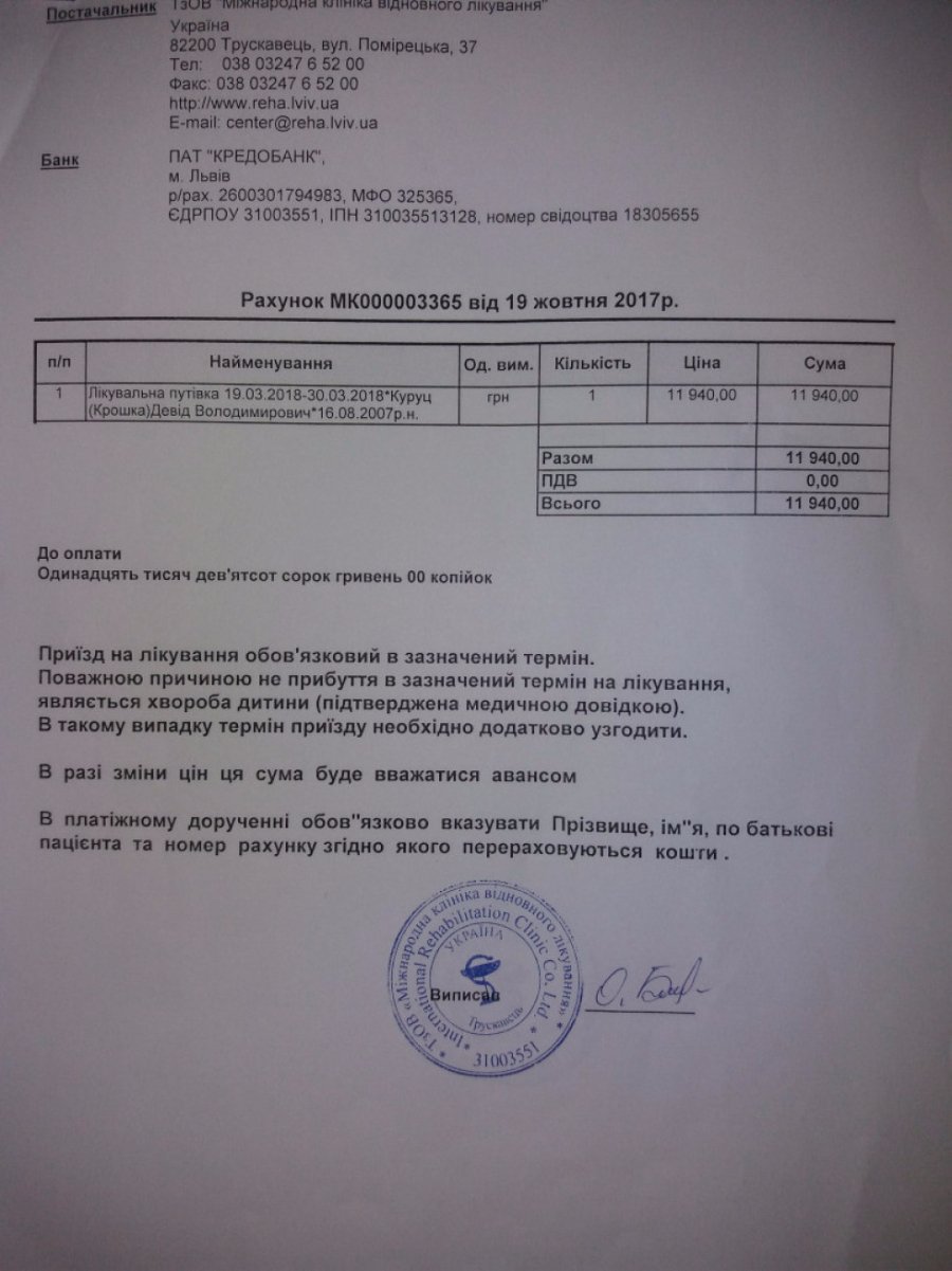 Тато хлопчикiв покинув, сказавши, що такi дiти йому не потрiбнi. Жінка знайшла необхідне лікування для хворога сина у Мiжнародній клiнiці вiдновного лiкування iм. Козявкiна, що в Трускавцi.