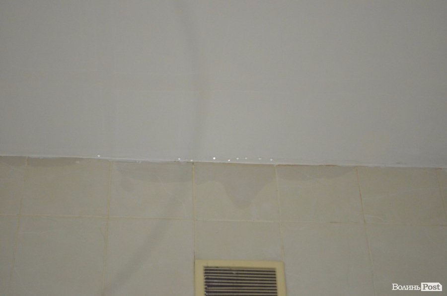 «Там світиться, але ніхто не відкриває Ми вже скаржилися, зверталися в ЖКП, був їхній інженер, складали акт і нуль реакції – погорворять-поговорять, ви ж бачите, потріскала стеля і вже плитка рухається», - повідомила старша медсестра Зоя Мялковська.