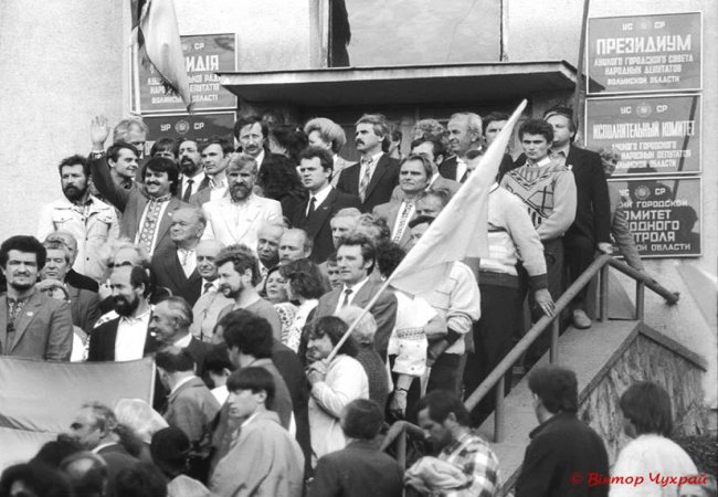 "Це Люди, які піднімали жовто-синій стяг України над міською Радою. поряд з прапором Радянської України. Це я про Героїв нашого часу - тих, хто творив історію і Країну, а хто тепер при владі, і де ті, які тепер стали запеклими "патріотами" і активними борцями (певно за грошові знаки) Незалежність ще не проголошена", - написав у Facebook автор фото Віктор Чухрай.