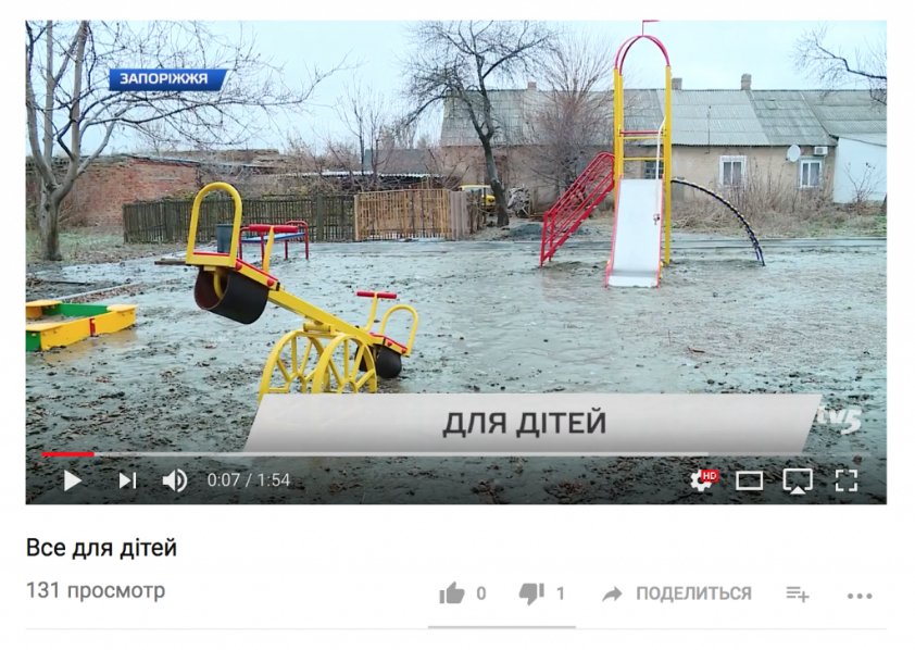 При цьому місцевий телеканал випустив сюжет під назвою «Все для дітей», в якому показали гойдалки в брудній жижі та задоволеного чиновника, який радісно позував на їх фоні.