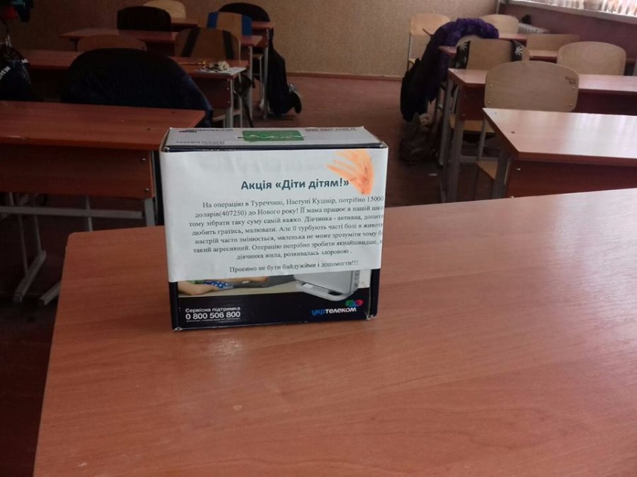 “Сьогодні усі гімназисти були волонтерами. Ми розпочали акцію зі збору коштів на лікування Настуні Кушнір у Туреччині. Хочемо допомогти маленькій дівчинці позбутися болю і отримати під ялинку найцінніший скарб – здоров’я. Не будьмо байдужими до чужої біди!”, – йдеться у дописі.