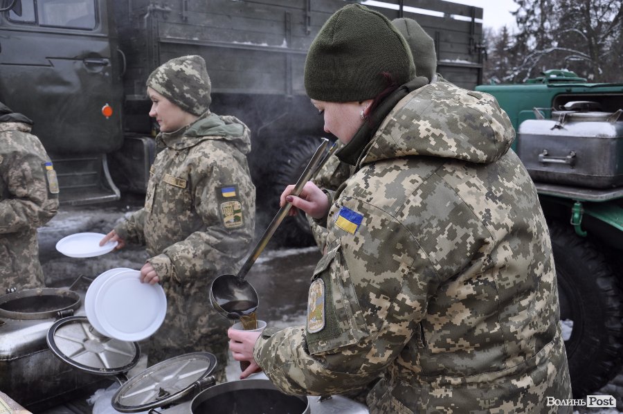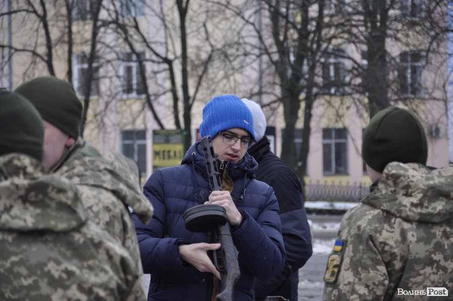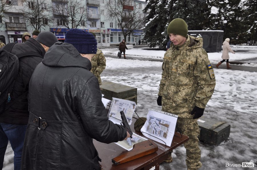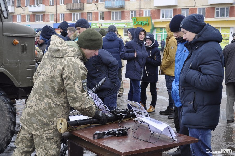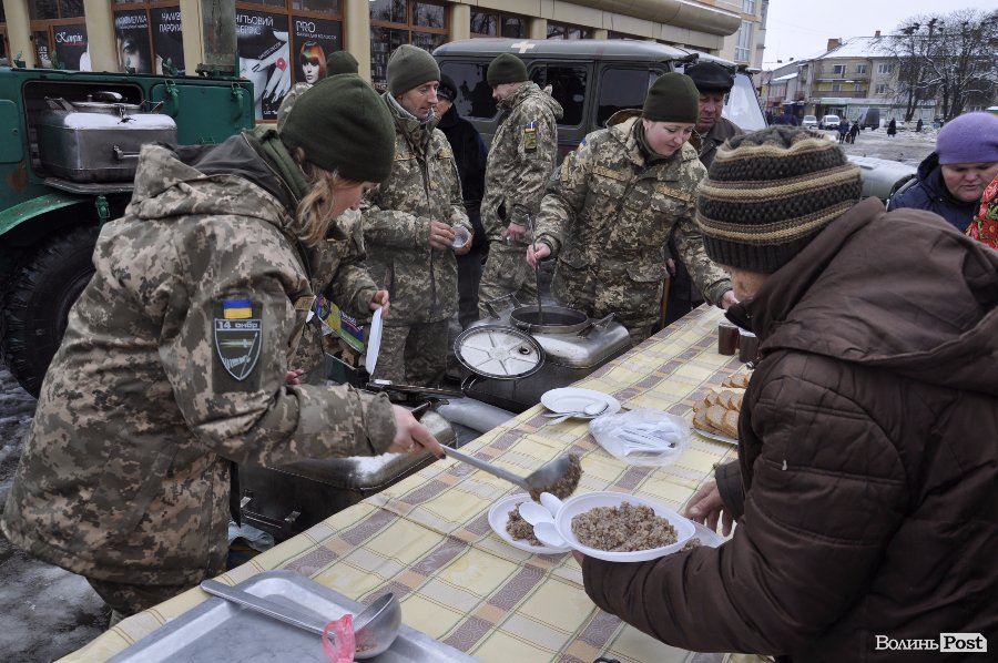 На головній площі Володимир-Волинського містянам показала стару та новітню та зброю та частували «солдатською» кашею.