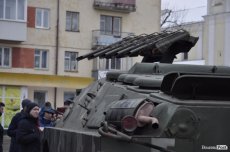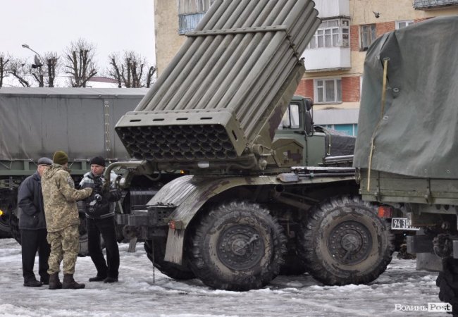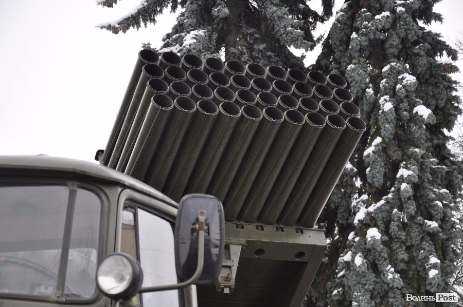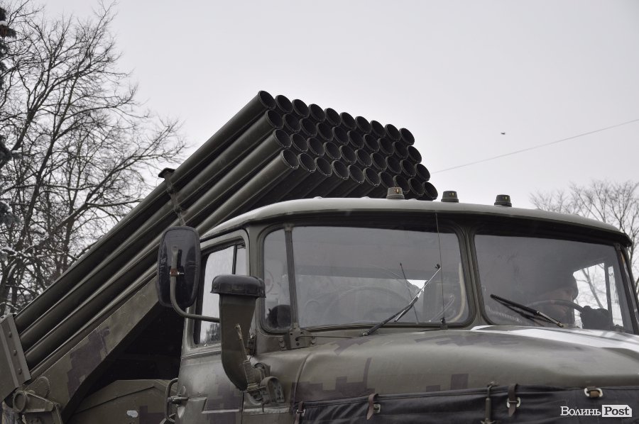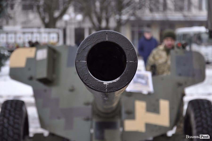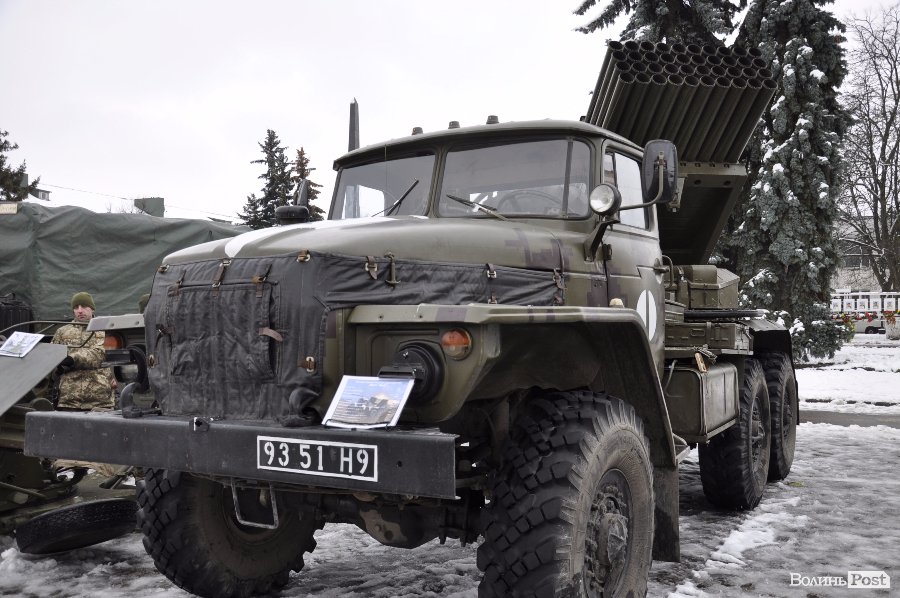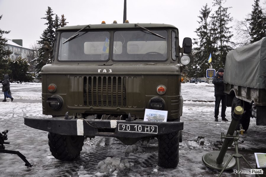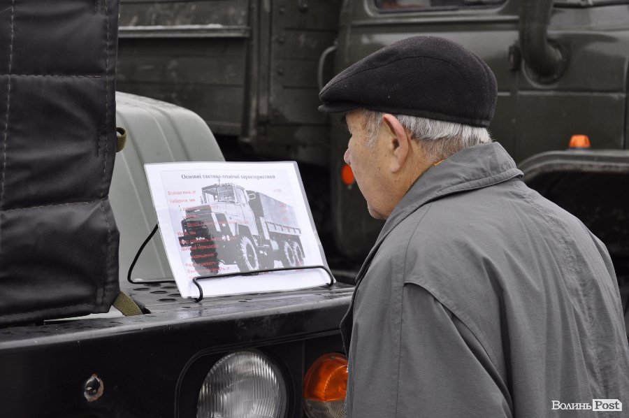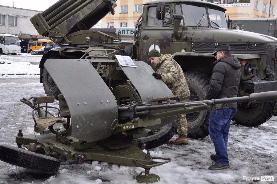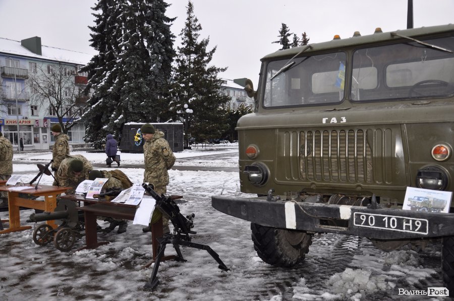 Так, на головній площі Володимир-Волинського військові розташували техніку та зброю. Тут як і старі зразки, якими уже не користуються в армії, так і нова зброя та техніка, якою бійці користуються у зоні АТО.