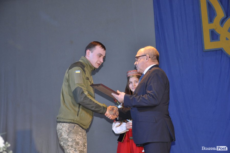 Голова Волинської обласної державної адміністрації Володимир Гунчик привітав усіх присутніх зі святом. Опісля голова ОДА нагородив відзнакою Президента України «За гуманітарну участь в антитерористичній операції» волонтерів за добровільне забезпечення проведення антитерористичної операції в Донецькій та Луганській областях, волонтерську діяльність, перебуваючи безпосередньо в районі проведення антитерористичної операції у період її проведення.
