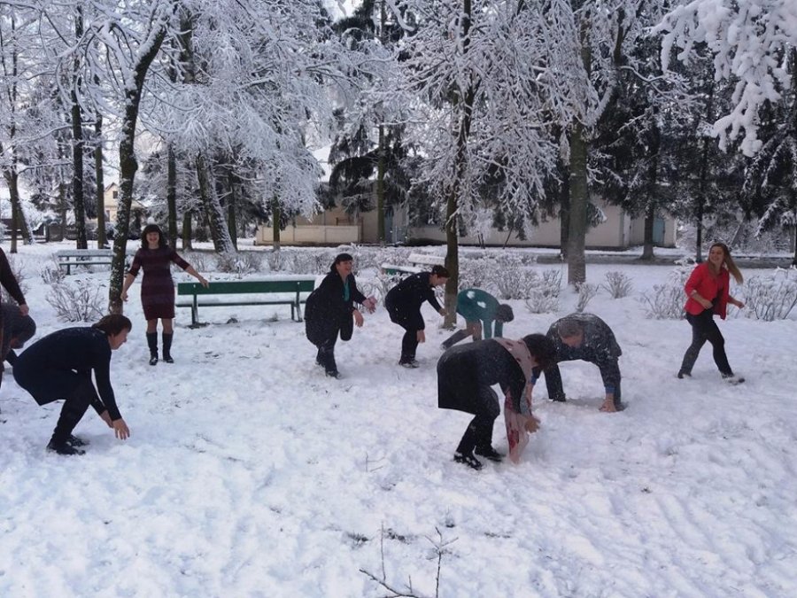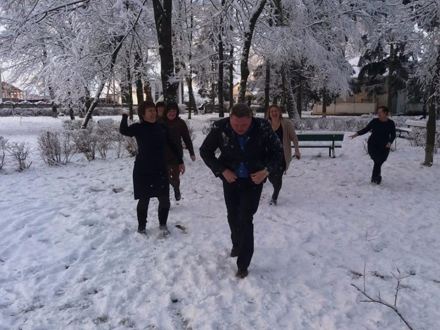 «Добре «відірвавшись» сніжками на директорові, усі вчителі пішли на заняття з «відчуттям виконаного обов'язку» із зарядом енергії на цілий тиждень. Хто наступна «ціль», завуч?!» – жартує у дописі директор Залізницького НВК.