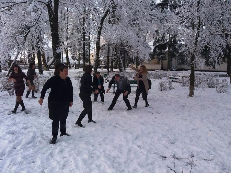 Біля навчального закладу вчителі влаштували справжню снігову битву. Фото гри в сніжки у Facebook виклав Сергій Кутинець, - пише Район.Любешів.