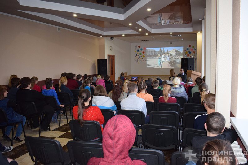 Також учні Крупівського НРЦ мали можливість подивитися короткі ролики про Луцьк, видатних лучан, послухати цікаві розповіді про історію стародавнього Лучеська, зокрема про відомий зїзд європейських монархів. Розповіла начальниця управління туризму і промоції міста і про сучасні родзинки Луцька. Віталій Ткачук додав, що цьогоріч «Braille Studio» вперше взяла участь у фестивалі «Бандерштат».