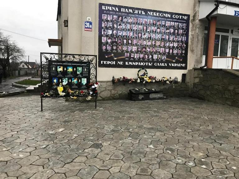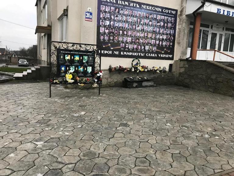 Біля дошки пам’яті загиблим учасникам Майдану та АТО в Ратному поклали бруківку.