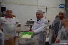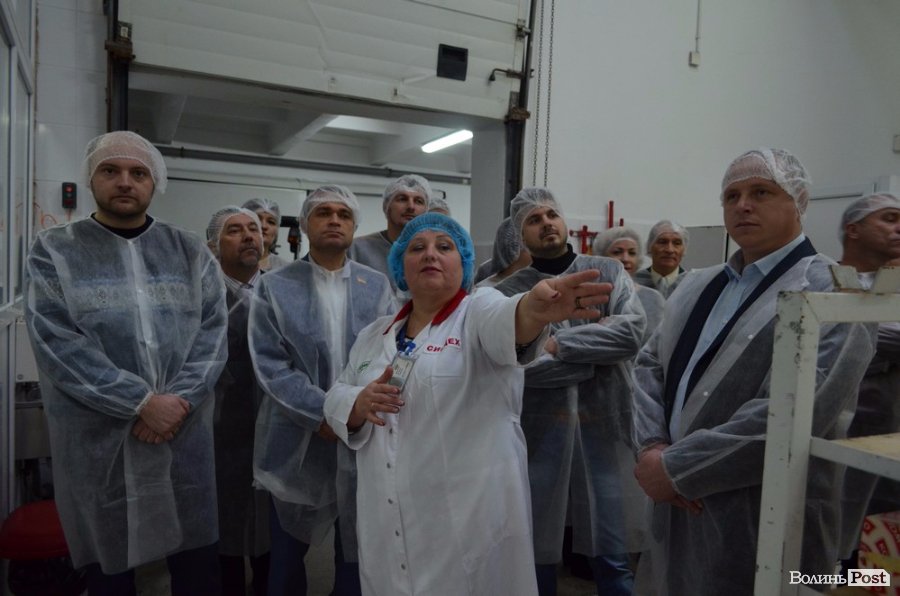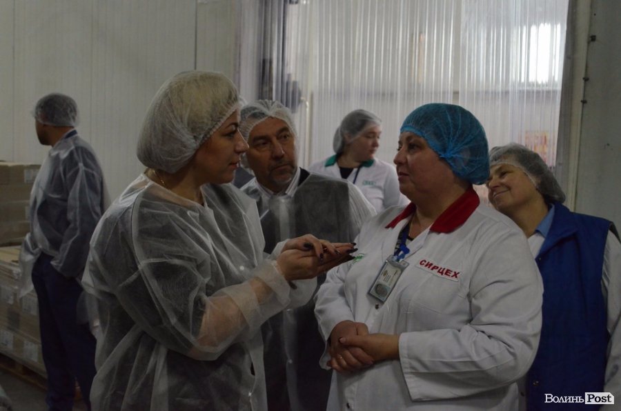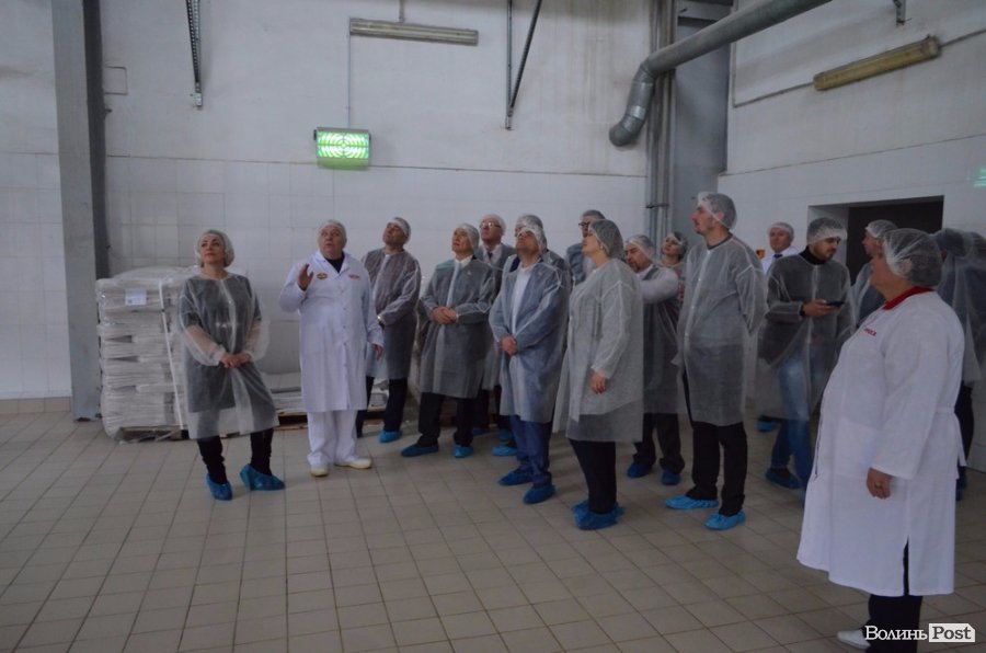 Після короткого привітання обранцям громади запропонували одягти халати, продезінфікувати руки та оглянути частину потужностей. Відтак, депутатів поділили на 2 групи, яким провели екскурсію директор з виробництва Наталія Шкаравецька та начальник цеху твердих сирів Ангеліна Ковальчук.