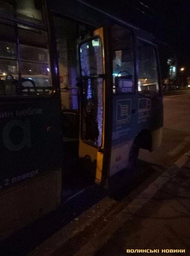 У Луцьку п’яний і агресивний чоловік побив двері маршрутного таксі.