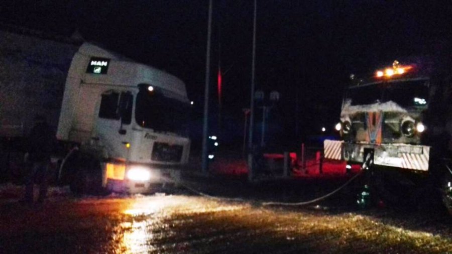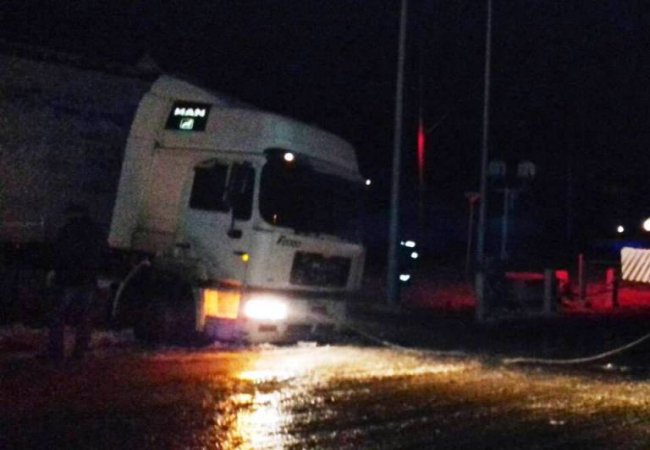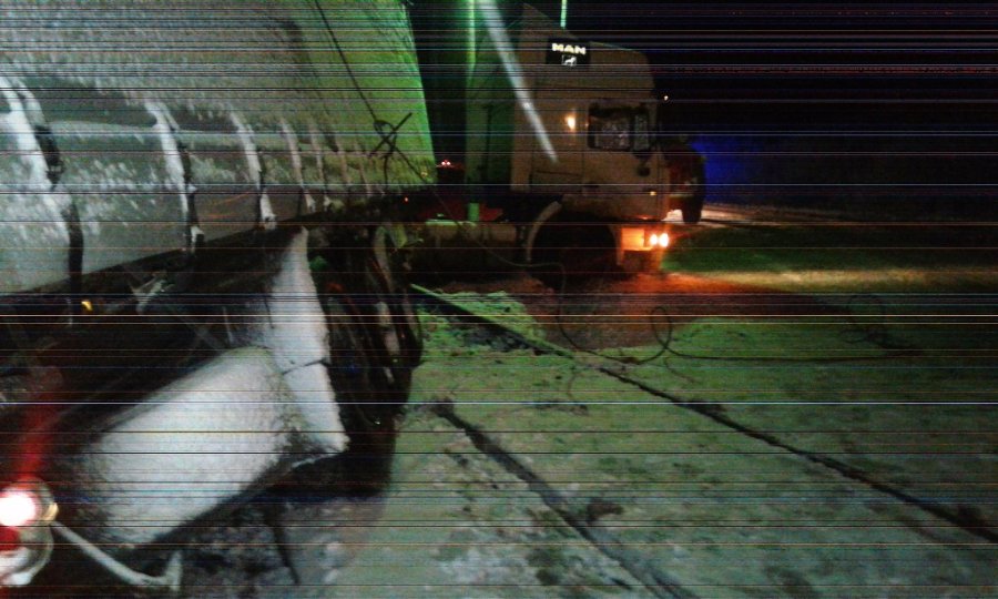 В селі Козин Рожищенського району 9 грудня о 23:56 вантажівка з лісоматеріалами застрягла на залізничному переїзді.