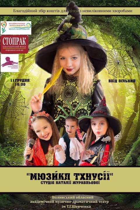 Юні актори творчої студії Наталії Журавльової показали лучанам та гостям міста благодійну виставу «Мюзикл Тхнусії», створену за мотивами книги Кей Уманські «Тхнусія та пантоміма».