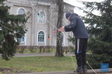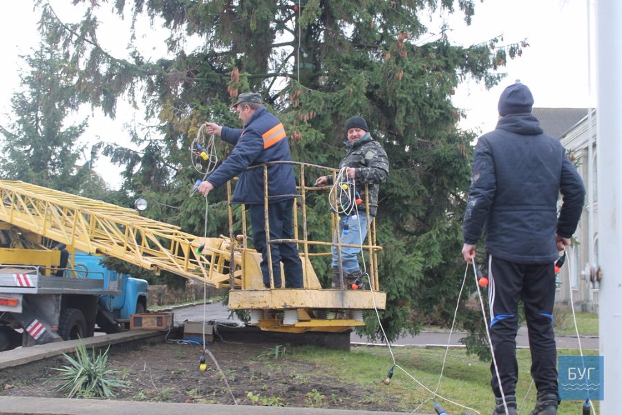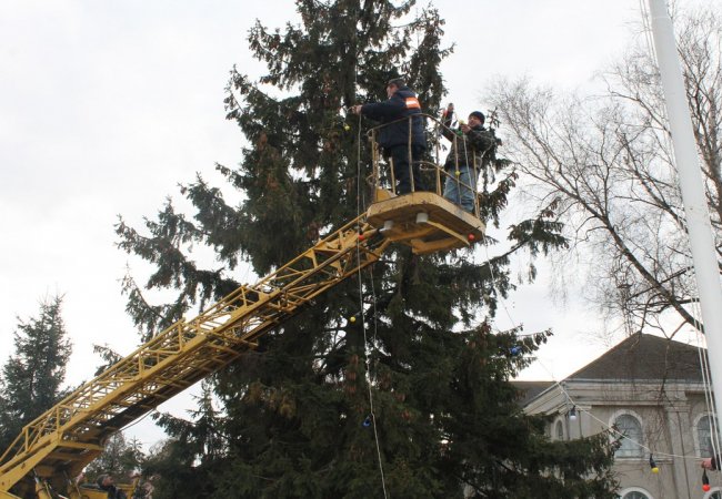 Начальник управління житлово-комунального господарства Петро Крась, який спостерігав за роботою своїх працівників, повідомив, що цього року буде вбрано дві ялинки: одну основну – ялинковими прикрасами і гірляндами, і ще одну меншу, гірляндами з вогників.