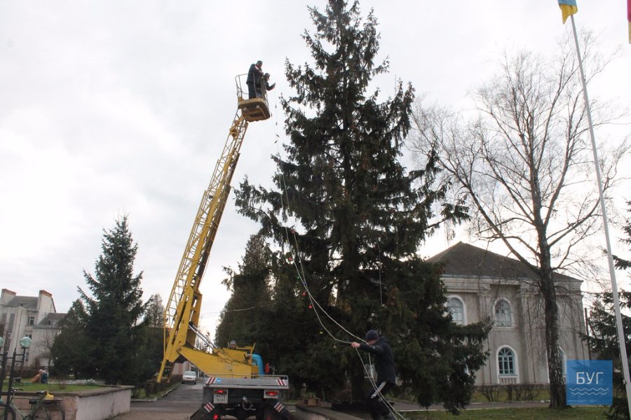 В Іваничах працівники комунальної служби почали прикрашати ялинку на центральній площі.