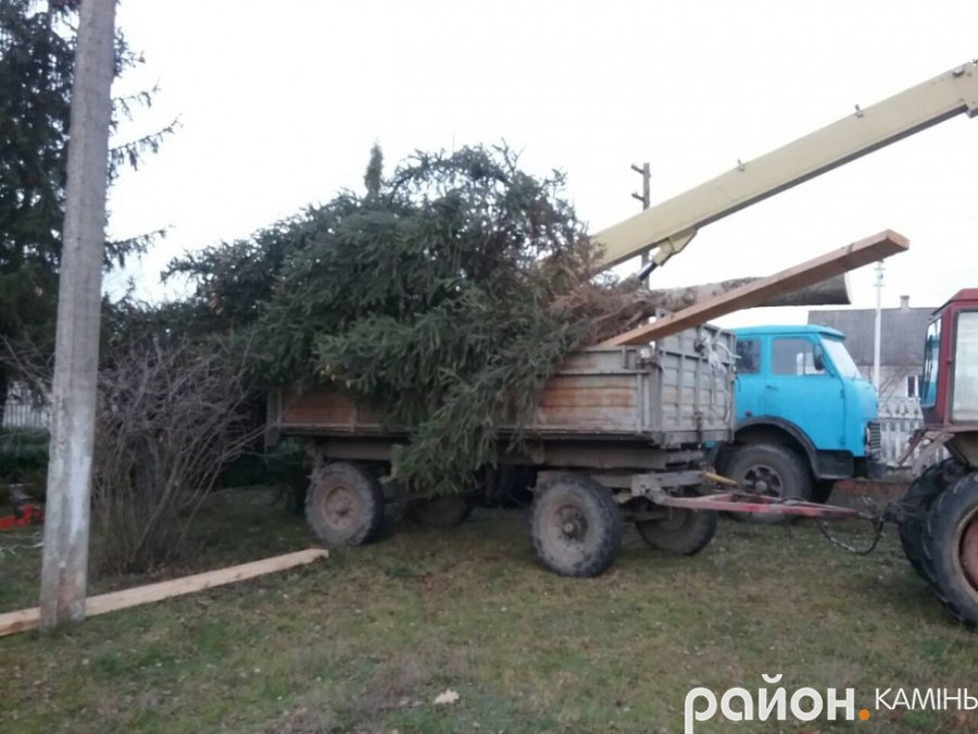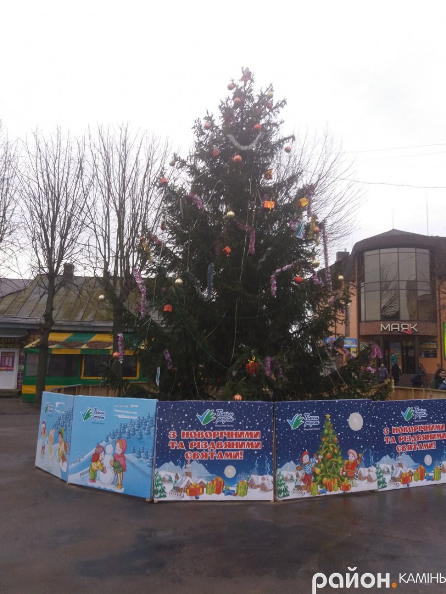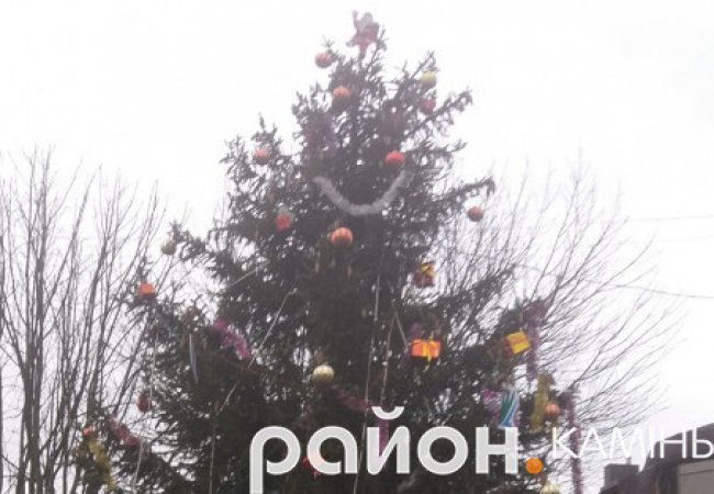 На площі Культури у центрі Каменя-Каширського комунальники встановили новорічну ялинку.