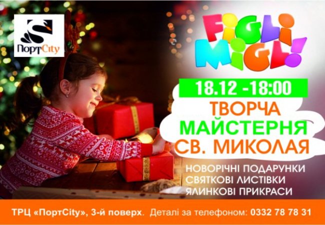 У дитячому розважальному центрі «Figli Migli» напередодні свят, 18 грудня відбудеться «Майстерня святого Миколая».