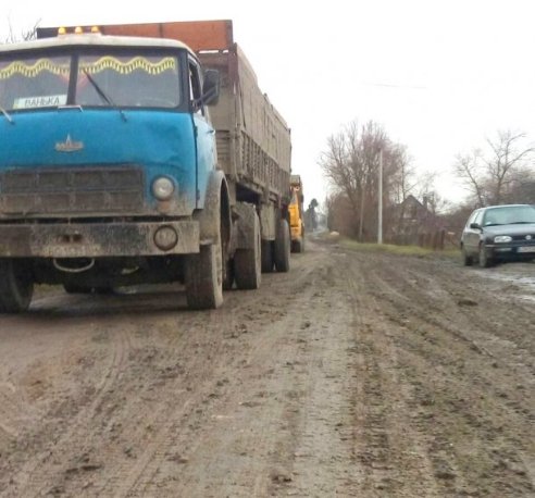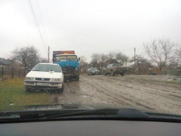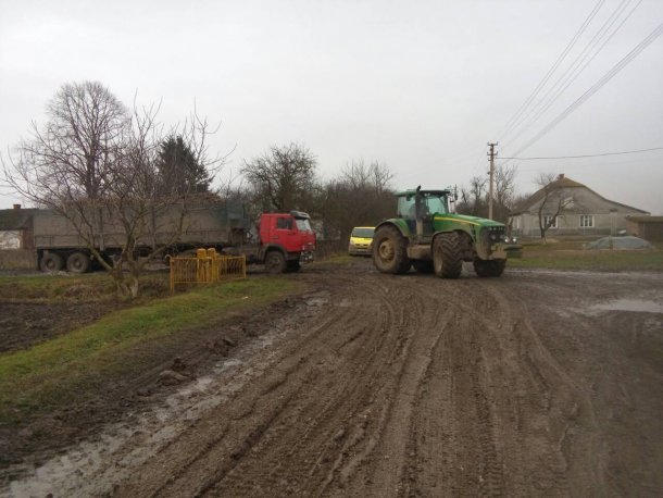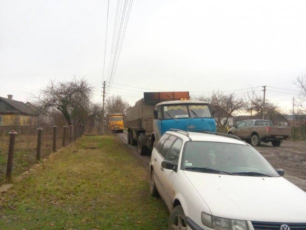 Вантажівки з кількома причепами та дощова погода зробили своє: вулиця перетворилася на болотну ковзанку.