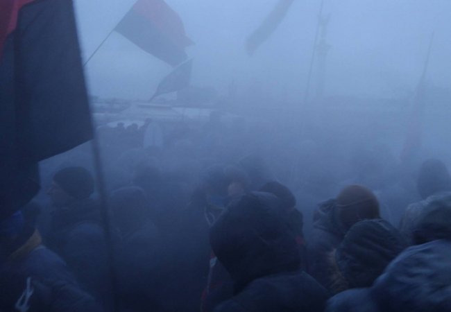 Протестувальники в Києві «штурмують» Жовтневий, поліція відбивається вогнегасниками