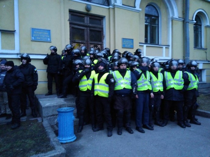 Учасники акції «Марш за імпічмент», намагаючись потрапити у Жовтневий палац в Києві, намагаються виламати двері та розбили вікна. У палаці триває концерт, на який прийшли з дітьми.
