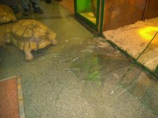 Зазначається, що спершу «маленьким гігантам» вдалося вибити 6-міліметрове скло, і це дало їм змогу втекти з вольєру. Зупинив втікачів один із власників зоопарку Вадим Івушкін, а для того, що втримати тварин, йому довелося сісти на одну із черепах.