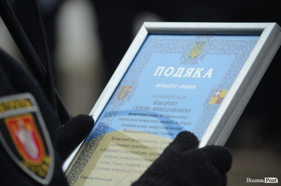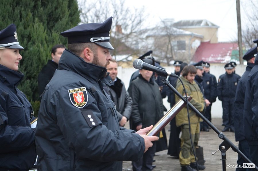 Опісля вітали патрульних радник міського голови Ігор Поліщук, керівник патронатної служби облдержадміністрації Борис Кондратюк, депутат Волиньради Михайло Імберовський та член громадського формування «Самооборона Волині» Олександр Ніколайчук. Він пригадав, як разом із поліцейськими неодноразово допомагав забезпечувати порядок у місті.