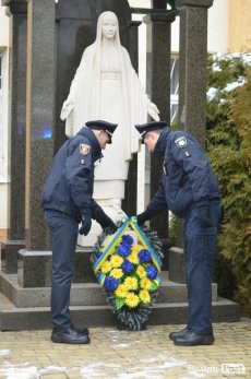 Біля управління зібралися десятки людей - поліцейські, їх рідні та друзі, а також військовий оркестр. Патрульні поклали квіти до фігурки Божої Матері на території управління, а опісля вшанували хвилиною мовчання правоохоронців, котрі загинули при виконанні службових обов'язків.