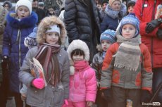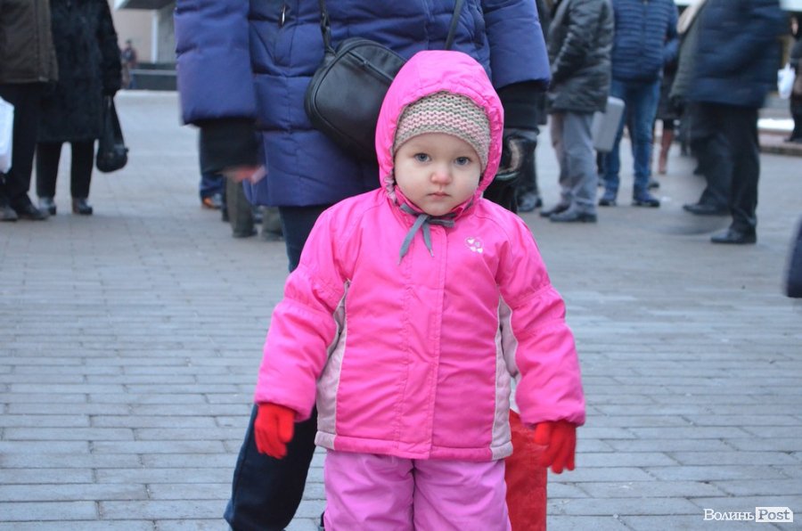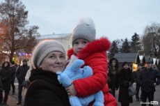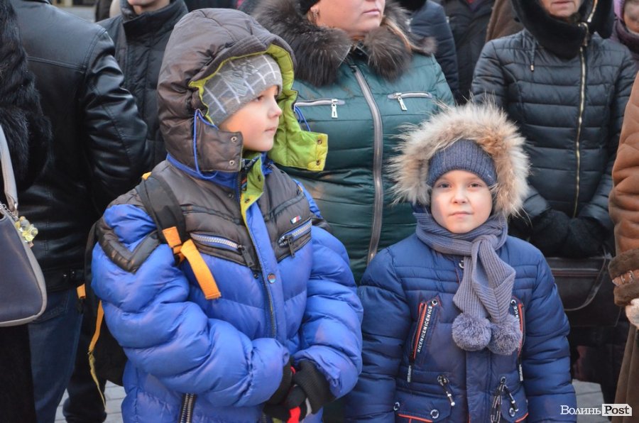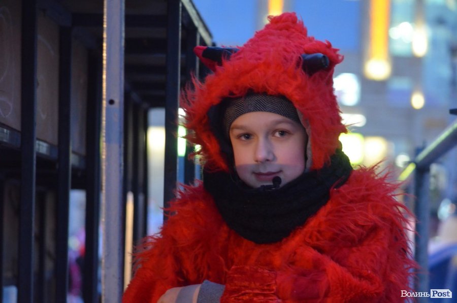 На Театральному майдані в очікуванні зібралися декілька сотень лучан, серед яких було чимало дітей - саме вони найнетерплячіше виглядали Миколая та чекали на святковий момент запалення ялинок. Цьогоріч біля зелених красунь встановили оригінальну ковану скульптуру собаки, з якою залюбки фотографувалися малюки.