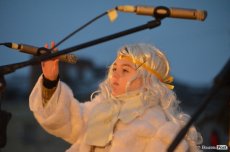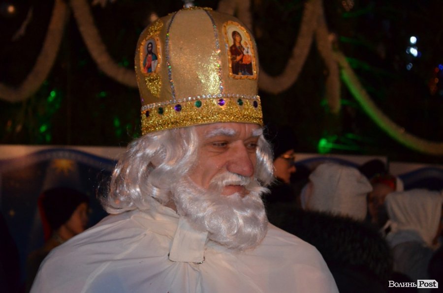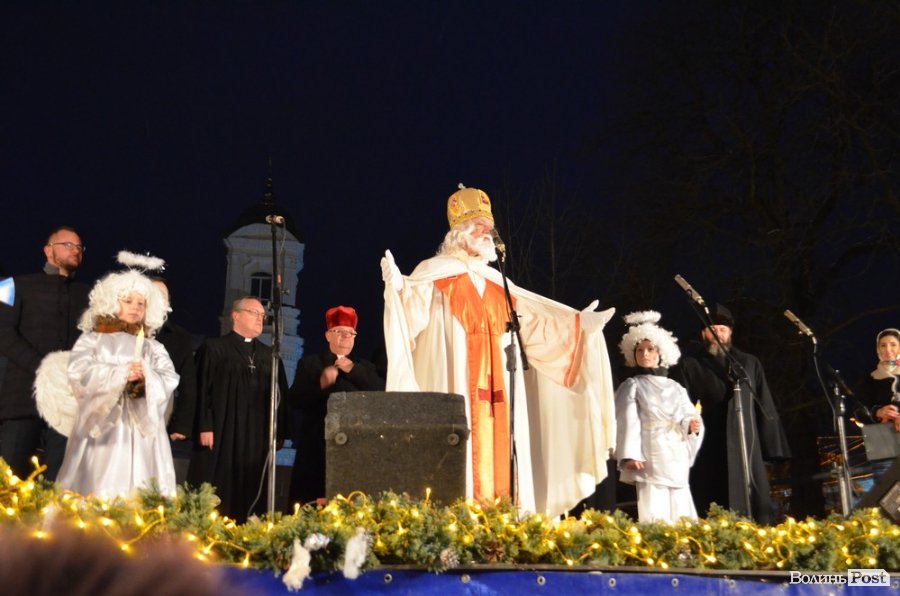 Далі на сцені з‘явився покровитель міста Святий Миколай у супроводі двох янголів. Він звернувся до лучан бажаючи їм достатку, милосердя та щастя в очах, терпіння та бажання робити життя один одного кращим.