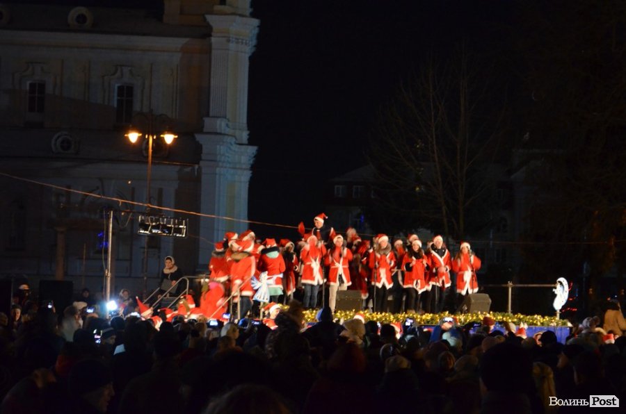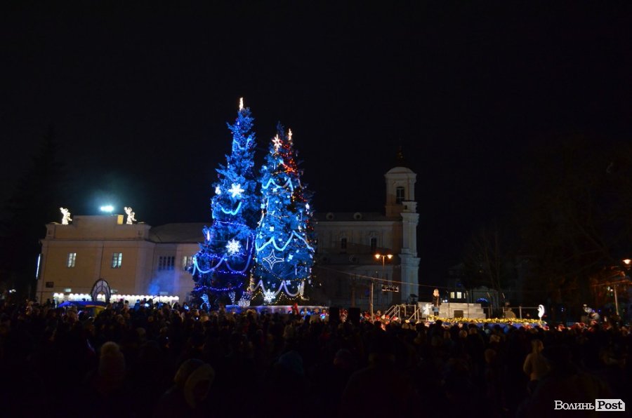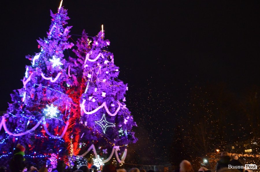 У центрі Луцька урочисто запалили новорічні ялинки – зелені красуні, вбрані в різні кольорові шати, засяяли гірляндами та вогнями.