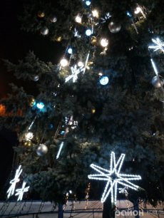 Цьогоріч, запалену ялинку прикрашають традиційні кулі золотавого відтінку та ілюмінації у формі сніжинок. На вершечку - зірка.