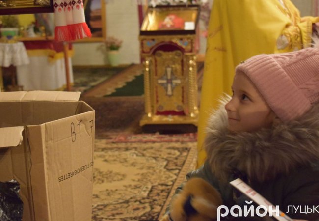 У церкві надвечір 18 грудня відчувається справжнє свято. У першу чергу, завдяки діткам, які разом зі своїми батьками прийшли на вечірню службу. На жаль, приміщення не опалюють, й тому в стінах засів неабиякий холод. Прихожани виймають руки з кишень, щоб лише перехреститися, - пише Район.Луцьк.