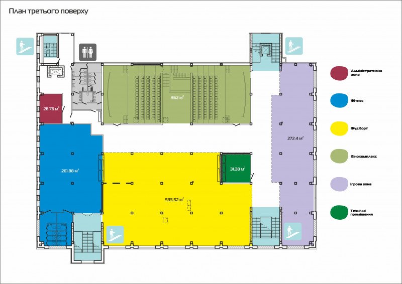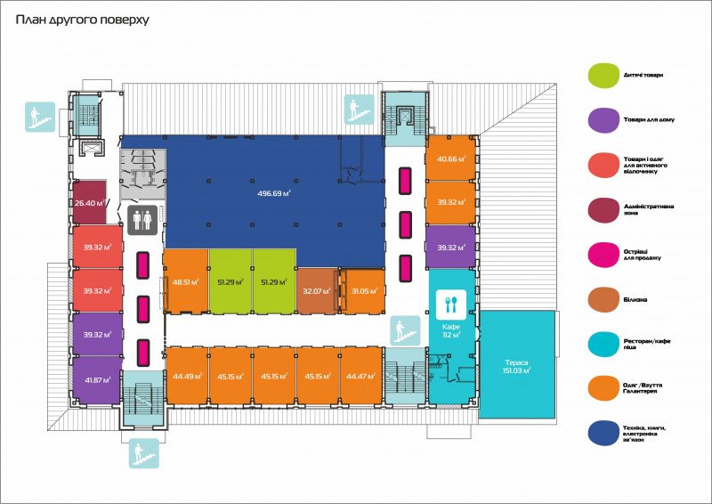 Проектанти розділили ТРЦ на комфортні зони за видами товарів та послуг.