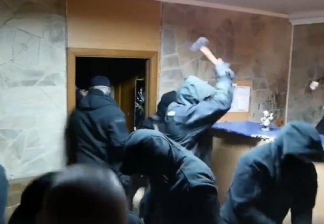 На прикріпленому до публікації відео можна побачити, як група молодих людей з молотками заходить в приміщення кафе і починає трощити меблі всередині.