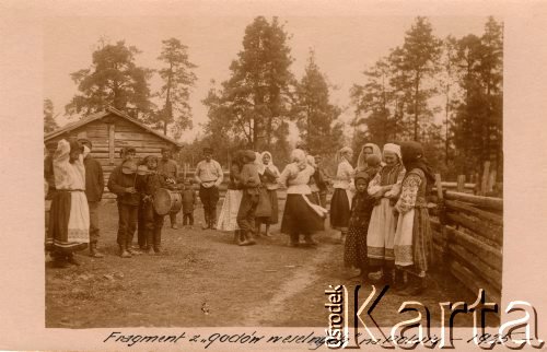 Окрім того можемо побачити місцевих жителів Волинського Полісся. На представлених кадрах можемо побачити, що більшість з них в святковому одязі. Не через те, що поліщуки такі раді були бачити столичних гостей. В них була інша причина. Топографи стали свідками поліського весілля, яке якраз відбувалось в дні їх перебування на Волині. Тому фотограф скористався можливістю й зробив кілька кадрів для історії.