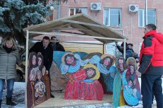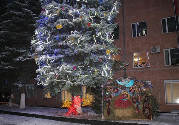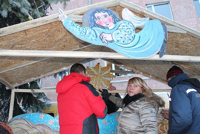 Напередодні свят біля новорічної ялинки ПрАТ «Волиньобленерго» облаштували різдвяний вертеп заввишки 2,5 метра.