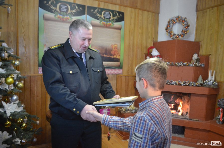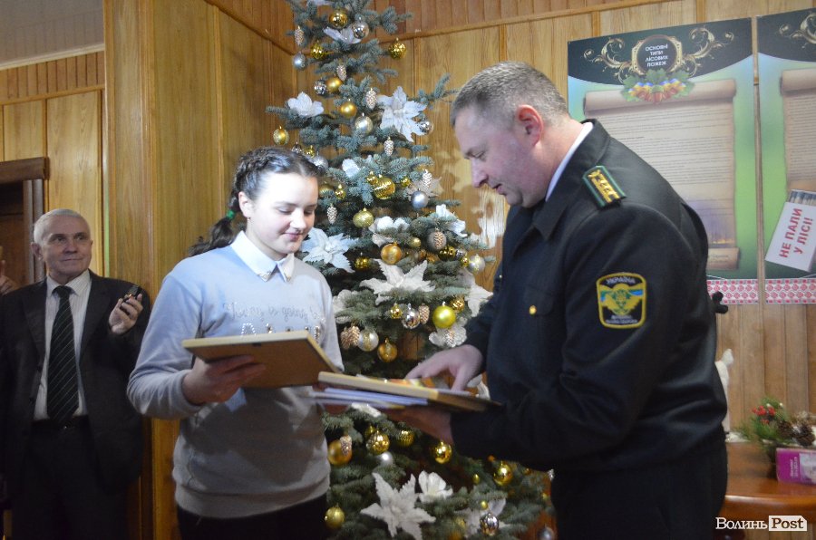 Троє дітей, чиї роботи визнали найкращими, окрім грамот, отримали ще й грошові заохочення. Вручив їх очільник волинського осередку Товариства лісівників України Борис Бабеляс. Він привітав усіх з прийдешніми новорічними святами та побажав усім миру.