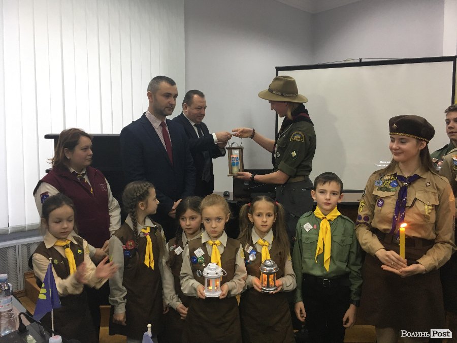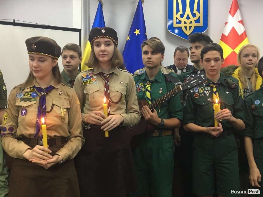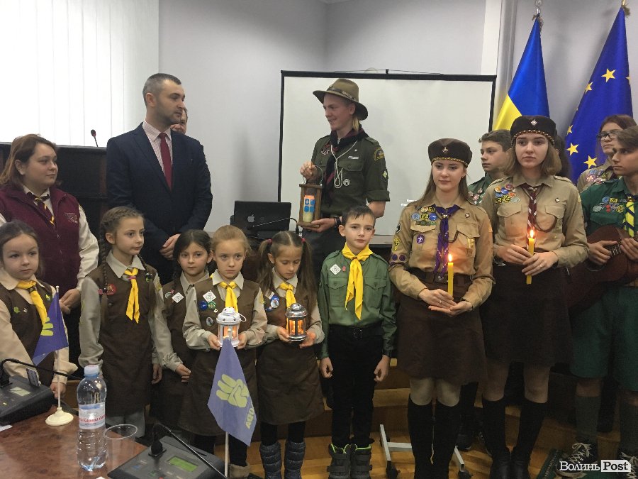 Представники Волинської округи національної скаутської організації «Пласт» передали лучанам Вифлеємський вогонь миру.